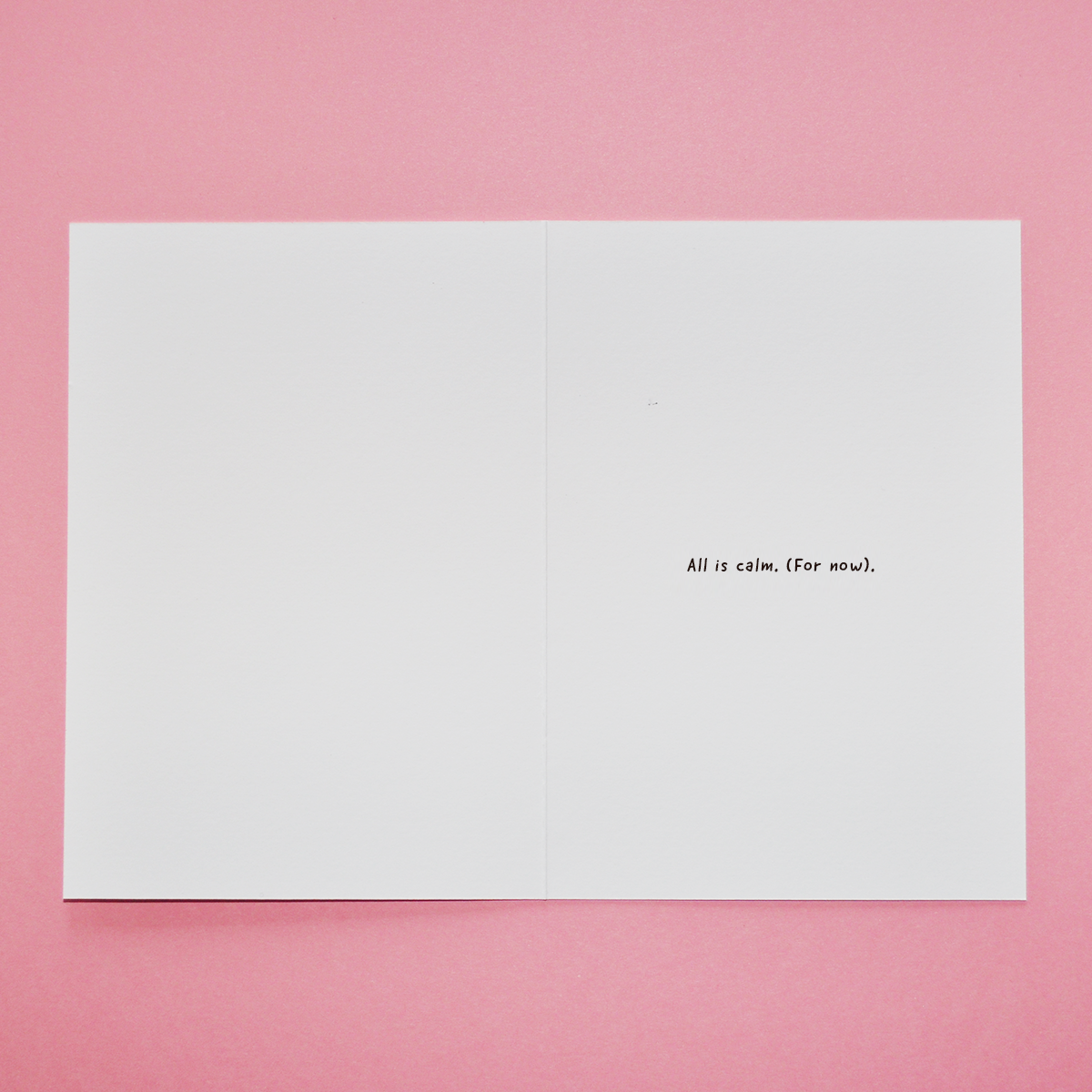 Inside reads: All is calm. (For now).